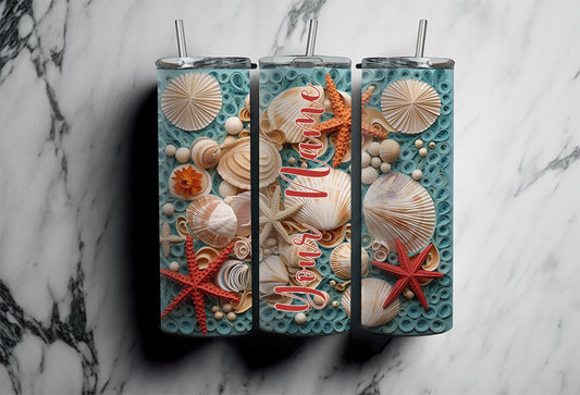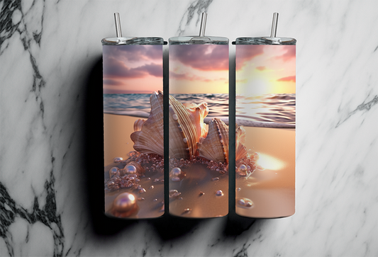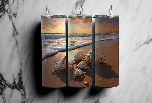 20 OZ Beach Custom Tumbler with Straw, Beach and Shells, Sublimation tumblers