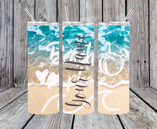 20 OZ Beach Custom Tumbler with Straw, BEACH, Sublimation tumblers