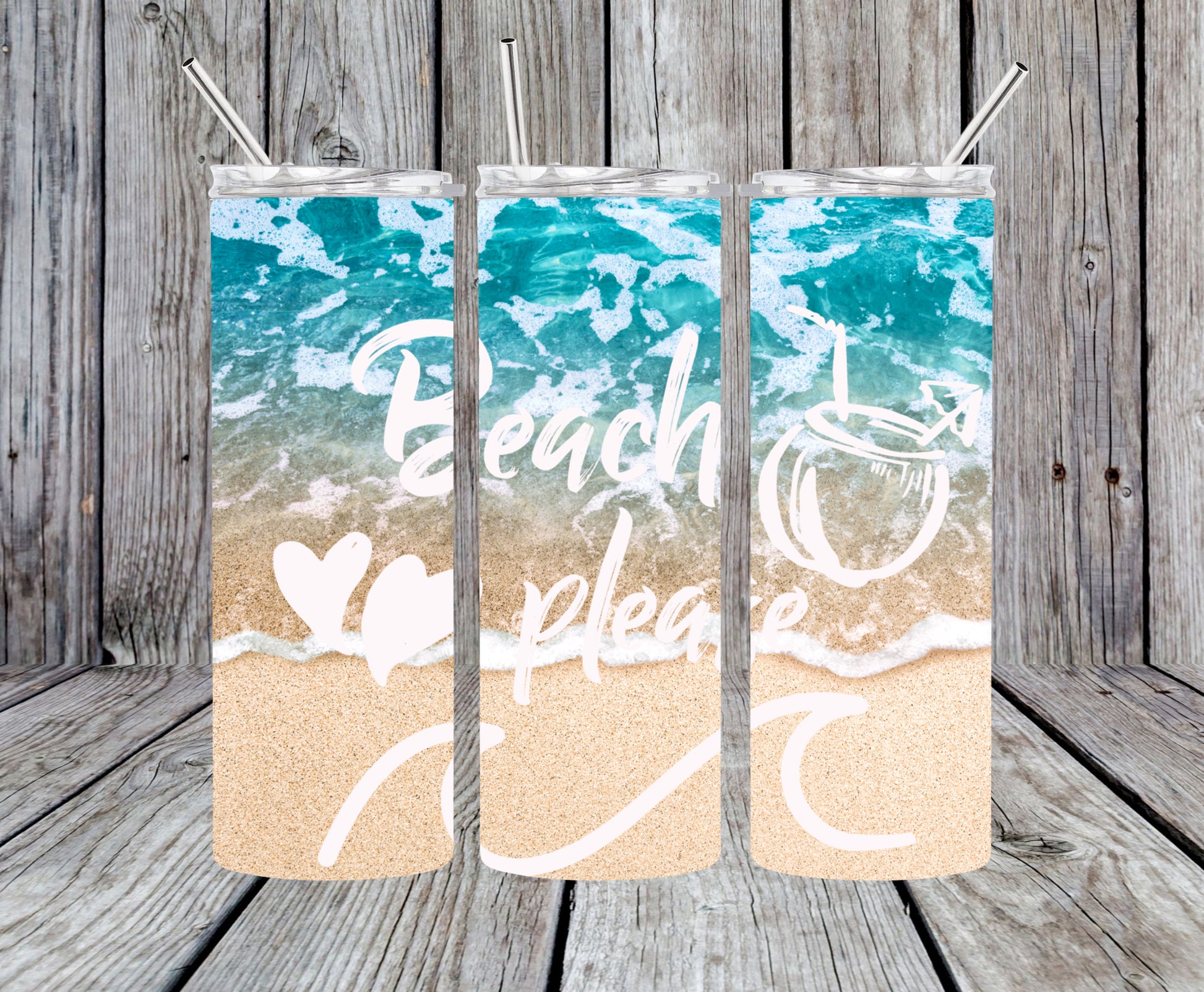 20 OZ Beach Please Custom Tumbler with Straw, CRUISE, Sublimation tumblers